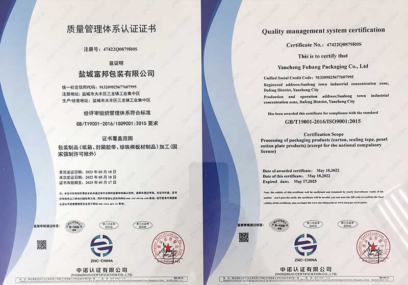 江鹽城富邦包裝有限公司創(chuàng)辦于2011年,地處環(huán)境優(yōu)美的鹽城大豐區(qū)三龍鎮(zhèn)工業(yè)集中區(qū),緊臨331省道和226省道,交通十分便利。是集研發(fā)、生產(chǎn)、經(jīng)營為一體的中型私營企業(yè),主要生產(chǎn)各種規(guī)格內(nèi)、外銷中高檔瓦楞紙箱、彩色印刷、封箱膠帶、紙托盤、珍珠棉、EPS(泡沫)成型、免模、大板裁片的專業(yè)工廠,年產(chǎn)瓦楞紙箱達400萬平方米、封箱膠帶260萬平方米、EPS泡沫10萬立方米以上。工廠占地8000平方米,生產(chǎn)廠房近3000平方米,擁有進口1020秋山四色膠印機,生產(chǎn)工藝先進,檢測手段齊全,品質(zhì)服務保證,本公司已通過ISO9001:2015國際質(zhì)量體系認證,并嚴格持續(xù)遵照體系認證及商檢部門要求組織生產(chǎn)和經(jīng)驗管理。。。。。。